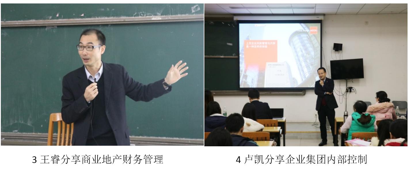1月8日上午,会计学院实践教学周第一场财会专题讲座在教学楼C208举行。学院邀请到太古汇(广州)发展有限公司财务副总监王睿先生、广州越秀交通战略发展与投资部总经理卢凯先生、ACCA华南代表处教育发展经理蔡晓凡女士、市场传讯经理余琳女士,会计学院副院长蒋基路以及教师常亮、周雅颂、丁建新参加了讲座。