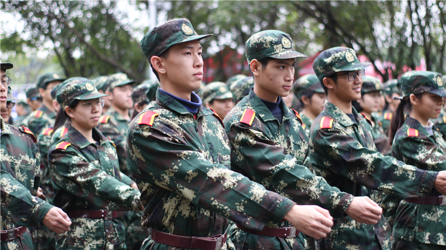 军训之所以让人回味无穷,是因为除了单调重复的训练,还有那么一群可爱的人儿陪伴着你。经过几天摸打滚跑的训练,同学们与教官之间已经积累了深厚的感情。一些教官由于个性和风格不同,也与大家碰撞出不同的火花。来自三营五连三排的教官自称“雷总”,便以其幽默风趣的言行和随和的性格,为同学们所喜爱。印象中的教官总是一本正经,时刻严肃;而他却正好相反。他自诩博学多才,当大家端正地站军姿时,他自个儿在一旁滔滔不绝地讲述他的“诗才”,还不忘吟诵某日诗兴大发得来的创作。在外面大风大雨,同学们纷纷转移到室内避雨时,他又主动扮演起面试官,在一场模拟面试中对应试者百般“刁难”。他先是让同学自我推销,又让他们推销汗血宝马,末了由于对他们的表现不够满意,还亲自上阵,手把手地教,让参与者直呼有趣过瘾。不同于“雷总”的大大咧咧,五连一排教官“老梁”则给人一种踏实感。他从不向学生发火,也鲜少惩罚,而是选择慢慢教导。他自有他的严格,他对于队列的要求是一丝不苟的;然而,对于学生,他总是默默关怀,会去询问有哪些身体不舒服的学生,也会提醒大家在寒冷的夜晚多加衣裳,俨然一位暖心的兄长。
