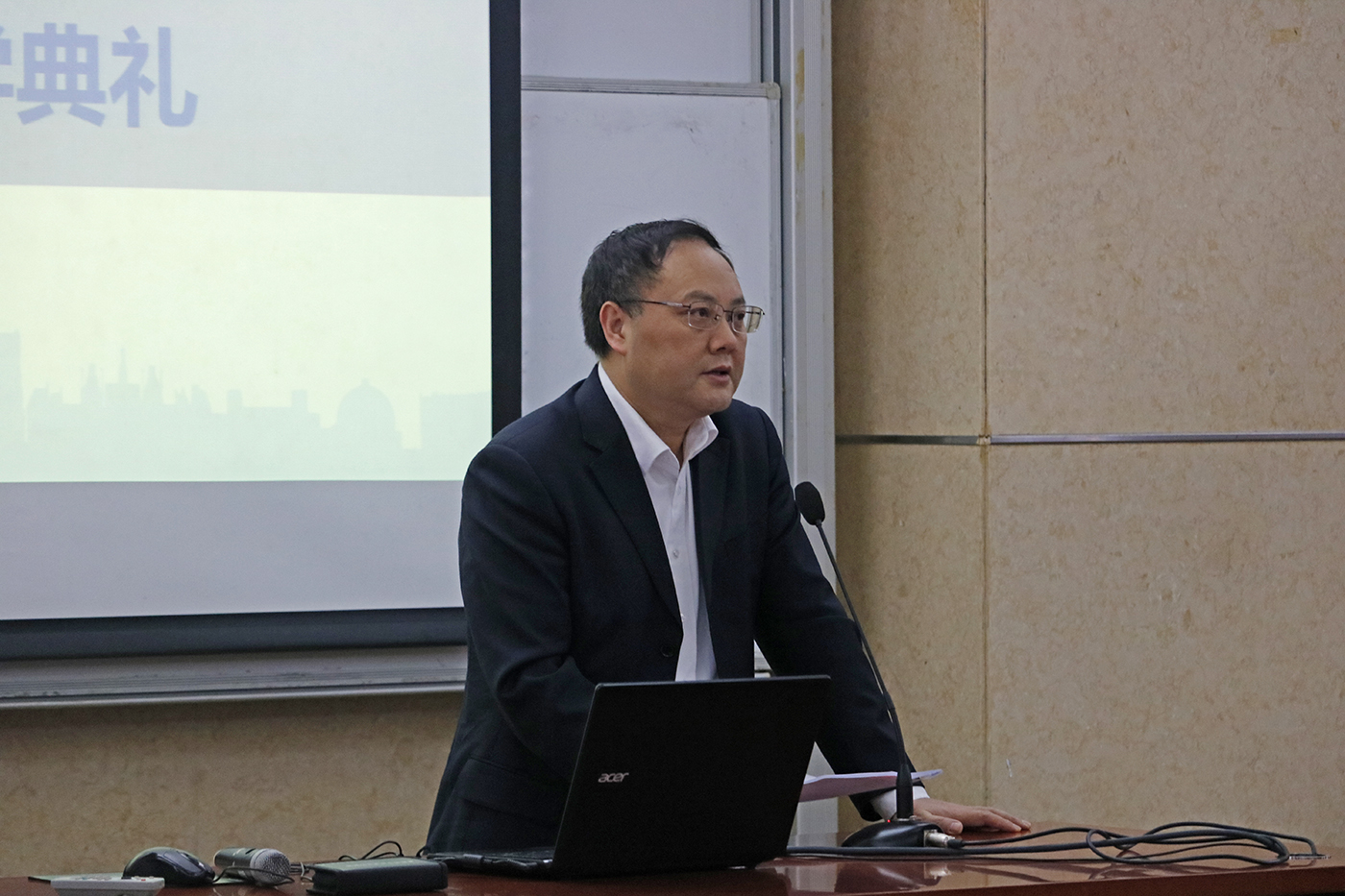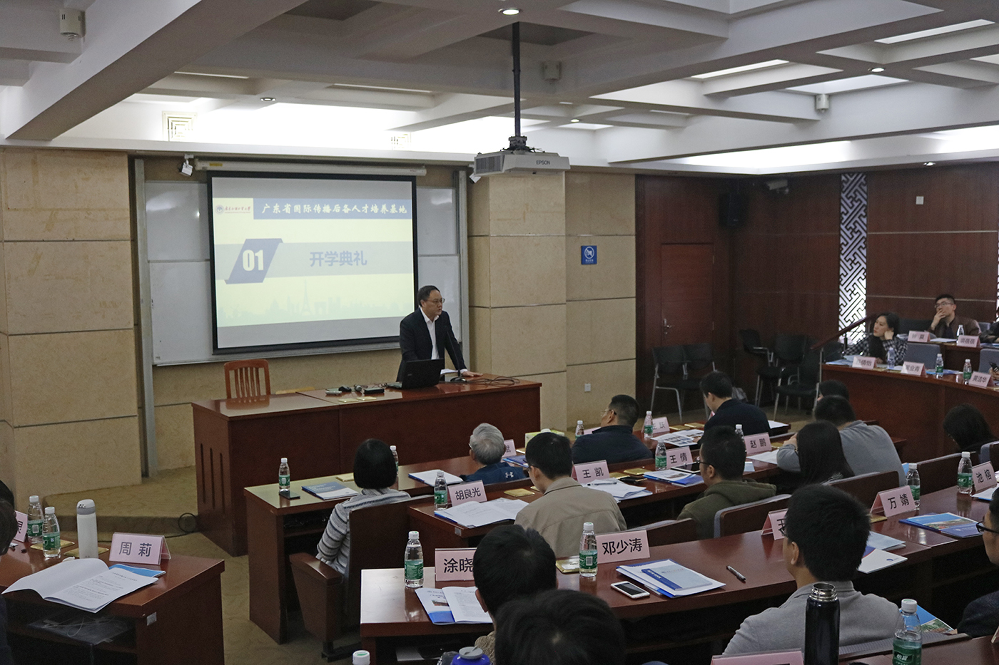 本网讯 1月5日上午,广东省国际传播后备人才培养基地开学典礼在北校区第六教学楼B103教室举行。校党委副书记石佑启,广东省委宣传部干部处处长李斌,复旦大学新闻学院教授童兵,新闻学院院长杨魁、新闻学院党委书记黄秀娟及南方日报、羊城晚报、广东广播电视台等省级媒体及省内18个地市的媒体机构学员参加了典礼。