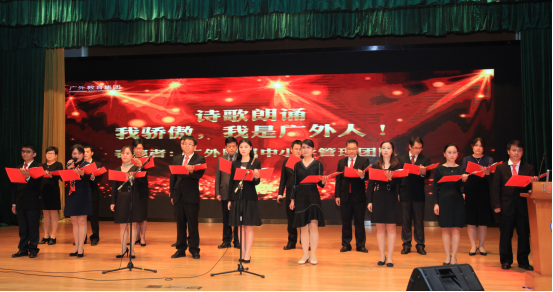 广外附属中小学管理团队在表彰大会上还表演了诗歌朗诵《我骄傲,我是广外人!》。