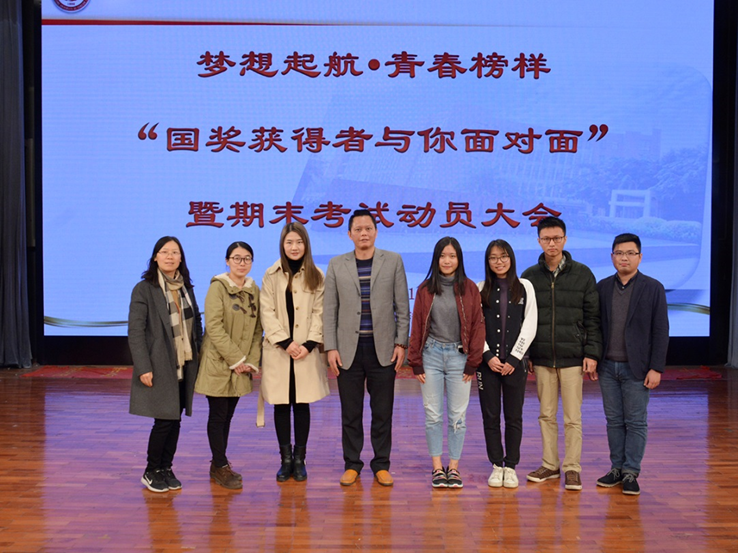 本网讯 为充分发挥优秀学生的先锋模范作用,激励广大学生成才报国,动员同学们以良好的心态积极备考,12月21日下午,法学院“梦想起航·青春榜样—国奖获得者与你面对面”榜样宣讲暨期末考试动员大会在B8学术报告厅举行。法学院教师代表及580余名学生参加活动。