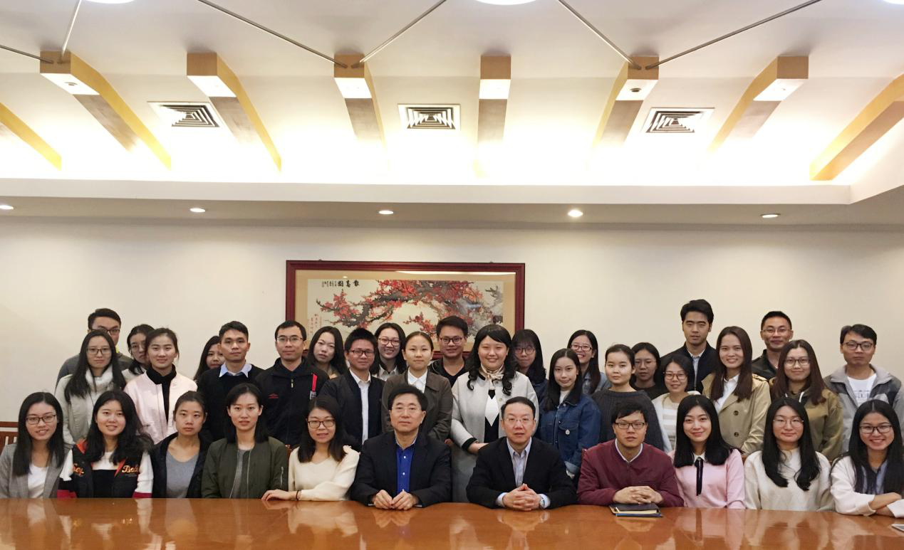 本网讯 12月8日上午,国家留学基金管理委员会美大事务部主任董志学来访我校,在北校区行政楼第二会议室与国际治理创新硕士研究生项目学员进行座谈交流。我校副校长阳爱民在北校区行政楼迎宾厅会见来宾。经济贸易学院院长张建武,国际治理创新研究院院长赵龙跃陪同会见。