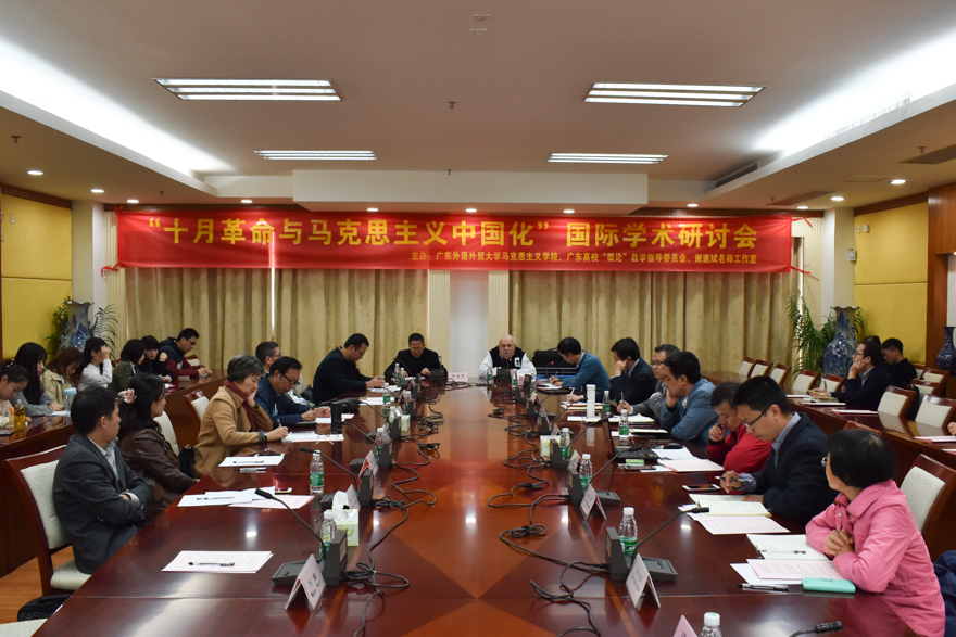 本网讯 11月23日,“十月革命与马克思主义中国化”国际学术研讨会在我校南校区行政楼召开。与会嘉宾紧紧围绕主题,从多个角度诠释了“十月革命与马克思主义中国化”的研究成果。我校马克思主义学院院长谢迪斌、学院党总支书记卢海清出席研讨会。俄罗斯乌拉尔联邦大学东方学系主任瓦金·库兹明在会上作主题演讲,并与马克思主义学院签署学术合作协议。
