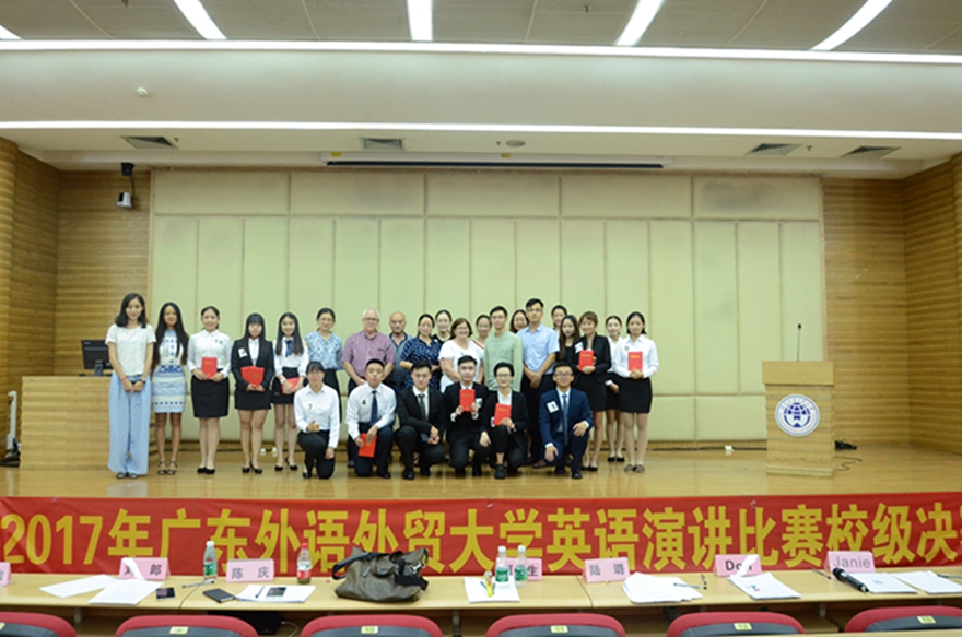 本网讯 10月11日,为提高我校学子的英语演讲水平以及选拔、推荐代表我校参加广东省“外研社杯”英语演讲比赛的选手,我校在图书馆报告厅举行了主题为“China, A Global View”的2017英语演讲比赛校级决赛。来自18个学院的选手通过他们独特的视角向现场的观众、评委分享了他们眼中的全球视野下的中国。一番角逐之后黄庆香、罗逸脱颖而出,分别获得了最佳演说奖、最佳人气奖。