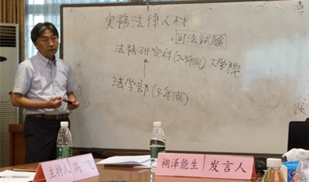 会上,日本早稻田大学法学院院长楜泽能生就早稻田大学法学院硕士生和博士生从入学到攻读年限、学分设置、每年的学习任务以及毕业论文的准备和毕业论文答辩的步骤进行了详细讲解,并介绍了早稻田大学法学院新开设的LLM全英文授课法学教育项目。