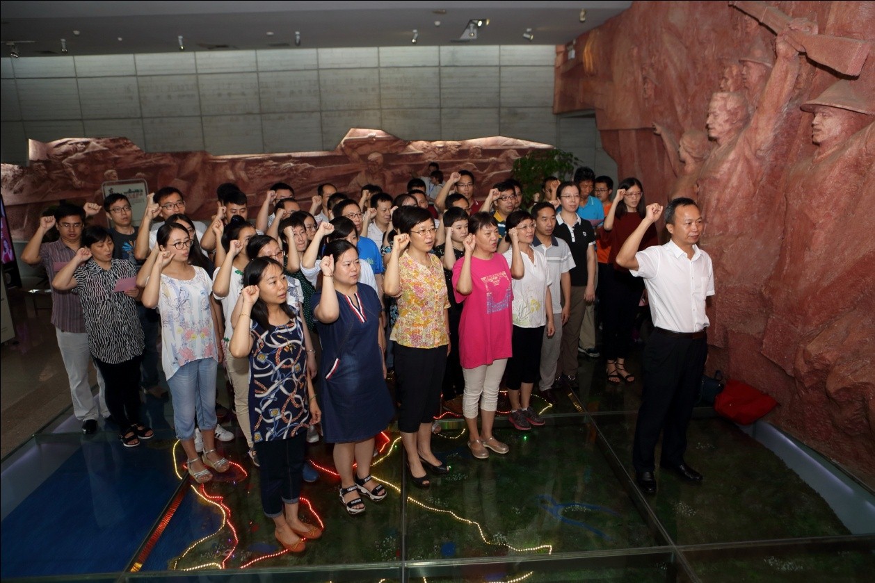 全体教职工党员还在纪念馆举行重温入党誓词仪式。