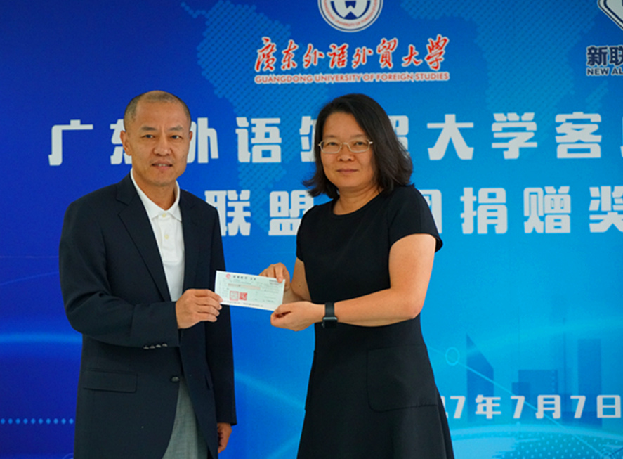 本网讯 7月7日下午,广州新联盟投资集团有限公司奖学金捐赠仪式暨客座教授聘任仪式在我校第九教学楼305举行。该集团向商英学院捐赠15万元,用于“新联盟·感动商英年度十大人物评选”,以表彰在学术、科研创新创业、孝老爱亲、社会实践、志愿服务、专业竞赛、文艺体育、自强自立等十个方面表现突出的学生。