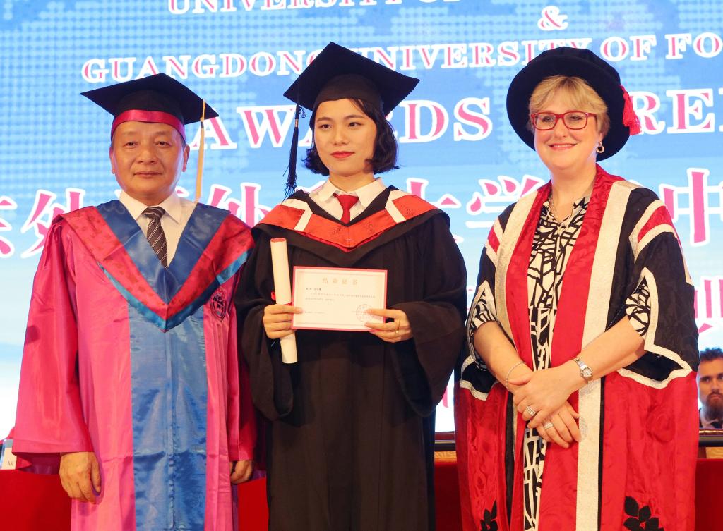 96位就读兰开夏国际项目的学生从Liz Bromley和陈林汉教授手中接过了结业证书,其中有5名表现优异的同学获得了兰开夏大学授予的奖学金。