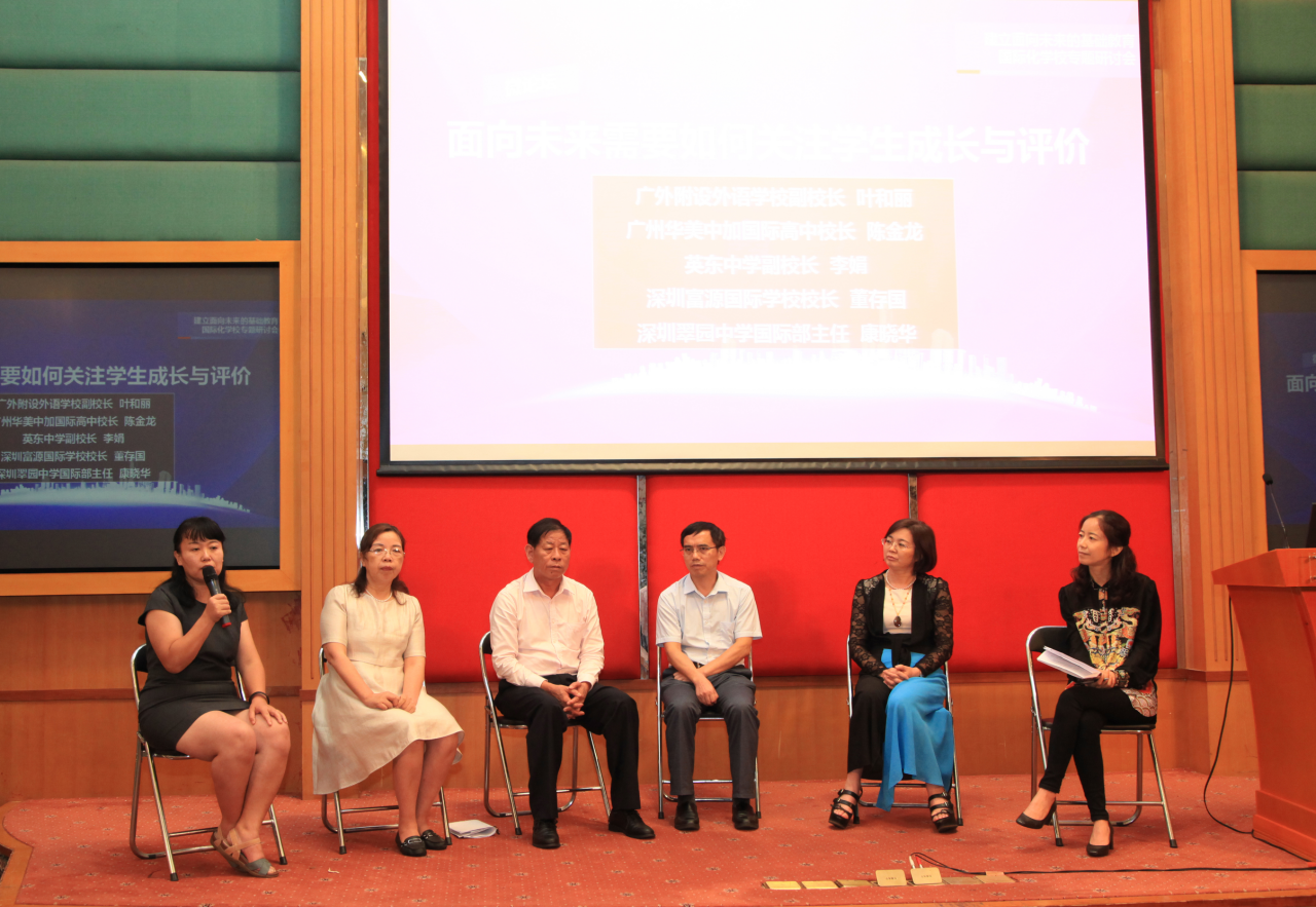 在微论坛环节,广外附设外语学校副校长叶和丽、广州华美中加国际高中校长陈金龙、深圳富源国际学校校长董存国、深圳翠园中学国际部主任康晓华、ULC剑桥国际高中副校长李娟等分享了各自学校的培养目标,其中“全人教育”“国际视野”“中西融合”以及“世界公民”都是高频出现的词汇。在谈到学生的成长与评价体系时,几个学校的代表都表示,学业成绩并非他们唯一的评价指标,学生的行为规范、品格发展、团队精神等方面也会作为评价指标。广外附设外语学校校长助理陈莲具体介绍了“培养走向世界的现代人,为孩子的终身发展负责”的人才培养目标,以及该校在此目标下设计的课程体系。