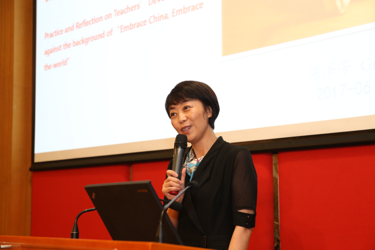 华南师范大学附属外国语学校校长陈泽芳认为教师发展是学校发展的根本,学校应先选择和本校理念及课程体系高度契合的教师,再予以通识性、价值取向和专业性方面的培养,成长为国际化学校的中坚力量。