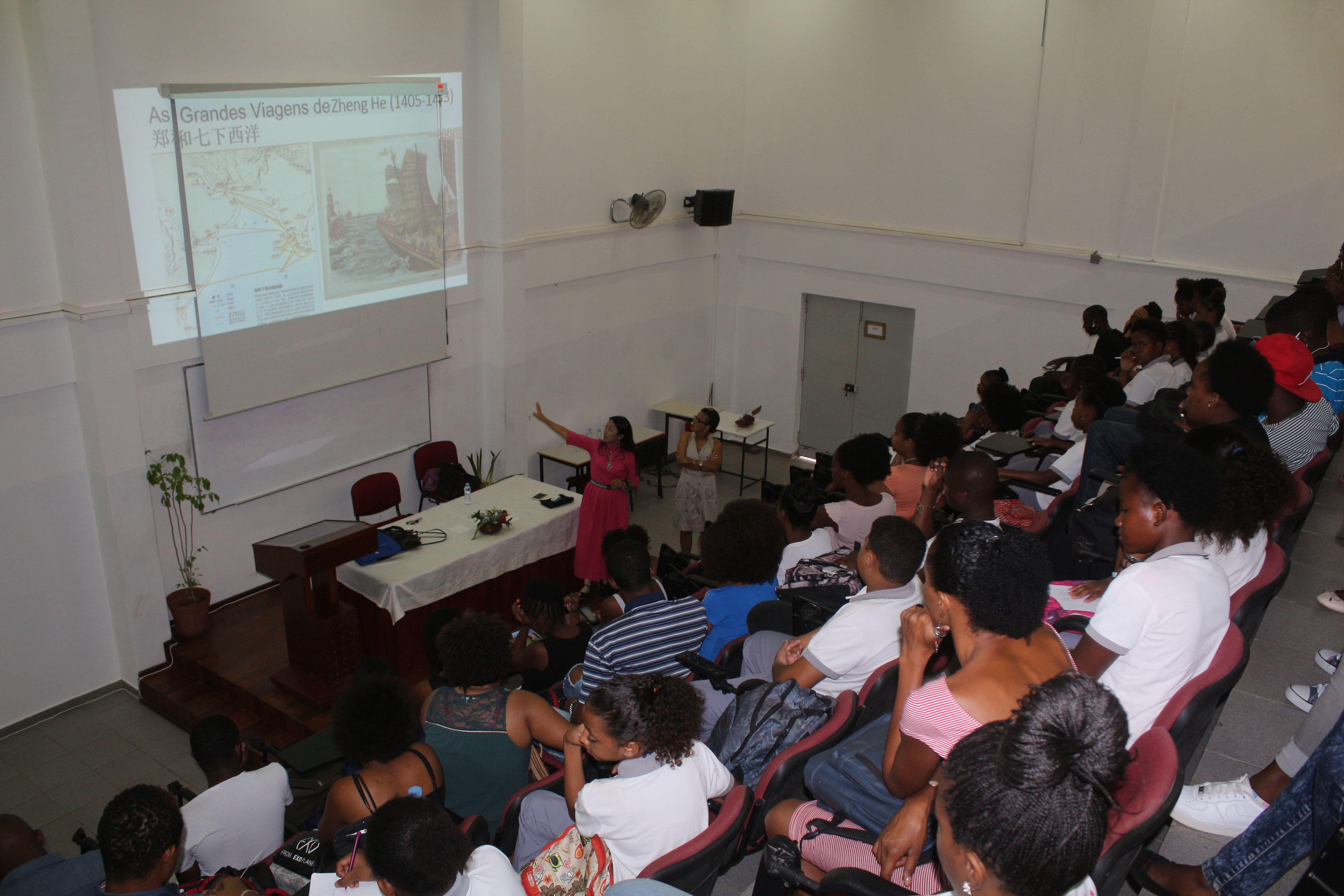 本网讯 6月15日,主题为“中国‘一带一路’倡议与佛得角”的讲座在佛得角大学Palmarejo校区举行,我校英语教育学院汉语专职教师苏春用中英葡三语讲课。这是佛得角大学孔院首次对外公开的文化讲座,由外方院长艾美琳达担主持。