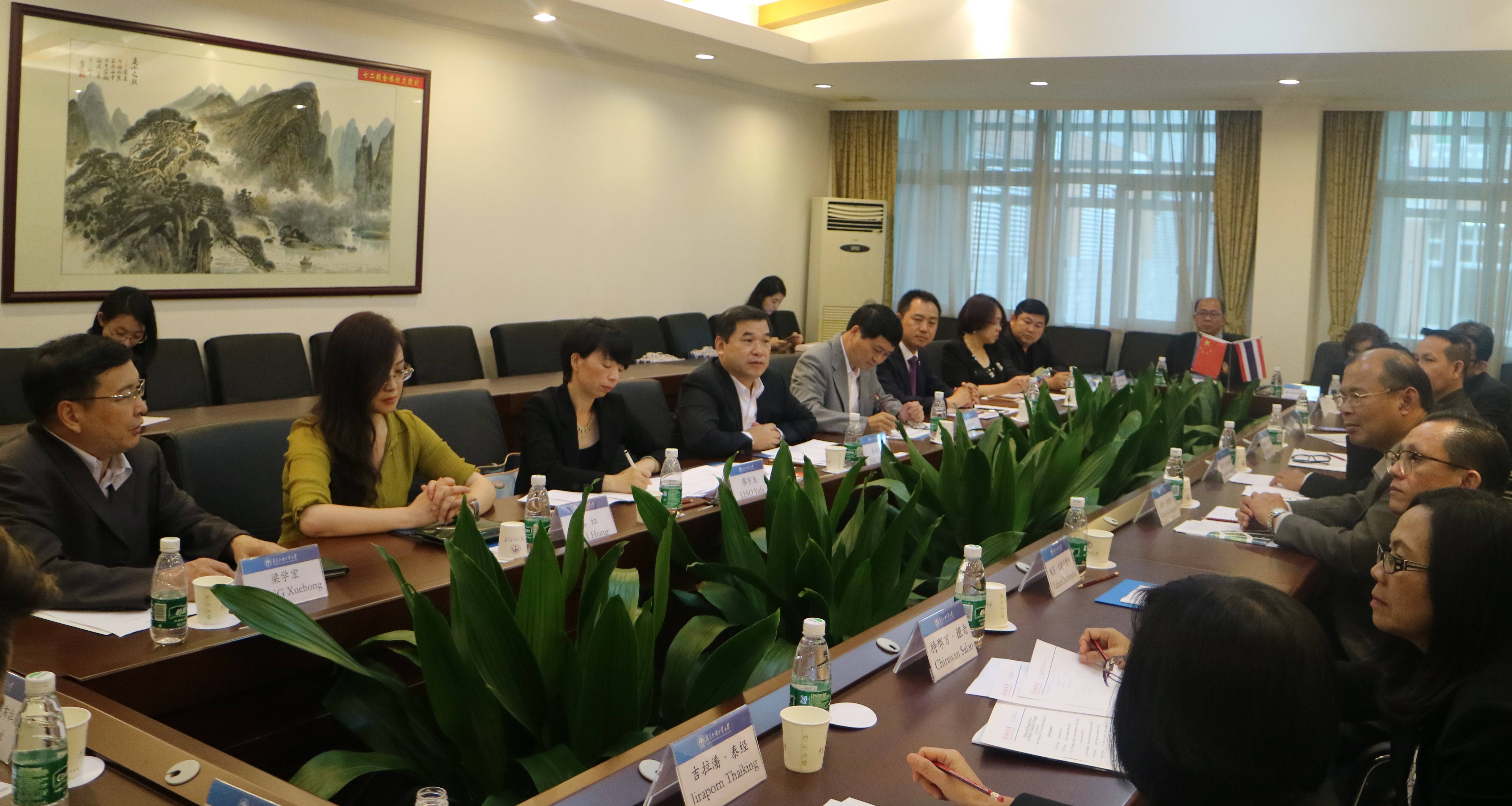 袁长青从内部八项举措、外部四项策略两个维度,对我校教学质量管理及保障体系。梁学宏介绍我校留学生教育的概况,提出泰国留学生数量在留学生总数中排名第三;同时,特别介绍了ASP项目,希望有更多泰国留学生来校学习、交流。