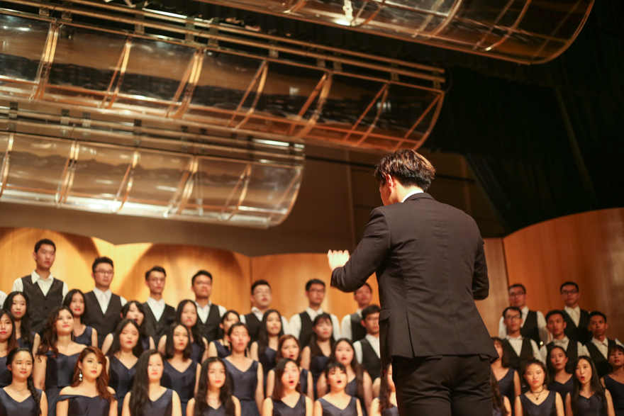 音乐会开场,校学生合唱团便为大家带来了五首风格迥异的外国歌曲,《Weep,O Mine Eyes》深沉悠远,将观众带入文艺复兴时期的沉重氛围;《Now is the Month of Maying》则是以轻快、欢畅的曲调为主,洋溢着春天到来的喜悦;《TheGlory of the Lord》雄伟、崇高,完美诠释了清唱剧经典《弥赛亚》的恢弘;《Panis Angelicus》以柔缓悠扬的旋律,如一位老人一般淳淳道尽圣歌的故事;《Edelweiss》缓缓哼唱,深情款款中,爱国恋乡之情被演绎得淋漓尽致。