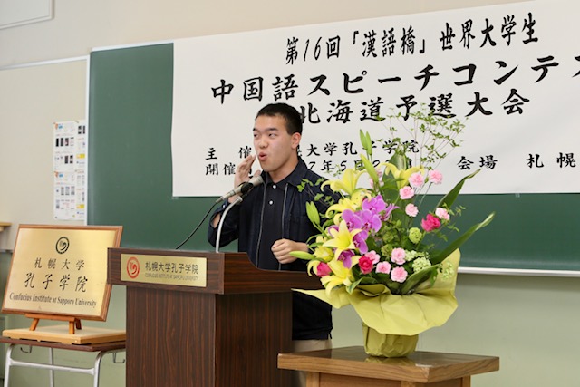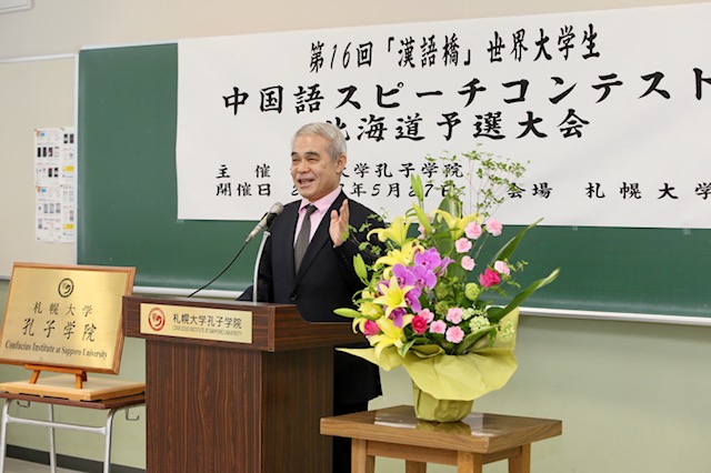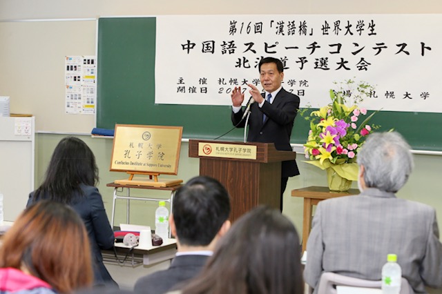 本网讯 5月27日,由日本札幌大学孔子学院主办的第16届“汉语桥”世界大学生中文比赛北海道地区预选赛在札幌大学举行。6名选手参赛,评委组组长由札幌大学孔子学院中方院长余六一担任。中国驻札幌总领事馆总领事孙振勇、领事张毅及副领事吉明,札幌大学校长兼札幌大学孔子学院理事长铃木淳一、札幌大学副校长兼札幌大学孔子学院外方院长山田铃良等出席比赛。“汉语桥”大赛是由孔子学院举办的中文比赛,已经成为各国学生学习汉语、了解中国的重要平台。