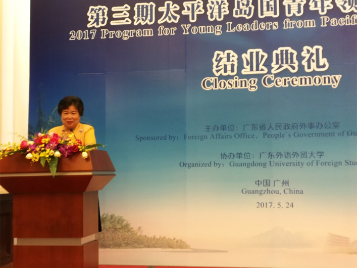 苏才芳回顾了研修班的学习内容,她指出,近年来广东省与太平洋各岛国在医疗、旅游等诸多领域开展了多方位的合作,希望与太平洋各岛国人民继续做最真诚的朋友,寻求更多领域的合作。