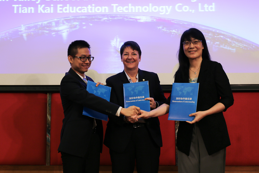 论坛上,广外教育集团、加拿大英属哥伦比亚省(BC省)哥维根谷学区以及广州壹响天开教育科技公司签署合作备忘录,内容涉及多个领域的合作内容,包括课程研发与合作、交换生项目、教师培训项目、教师和管理人员的影子计划等。同时三家单位合作的2017纯英浸泡与STEAM(科学、技术、工程、艺术、数学等跨学科学习)夏令营启动。据悉,本次夏令营由美国奇诺谷、加拿大哥维根谷两大知名学区教育长牵头组建,于7月16日-29日,7月30日-8月12日,分两期分别在广外附属中小学、广外附设外语学校举行。这是目前国内少数纯北美现任中小学教师配置,完整STEAM课程的高端夏令营之一。同时本次夏令营与广外教育集团基础教育教师发展中心的教师职业发展培训相结合,广外附校教师将有机会在夏令营跟岗学习STEAM课程,后续再参加集中培训。