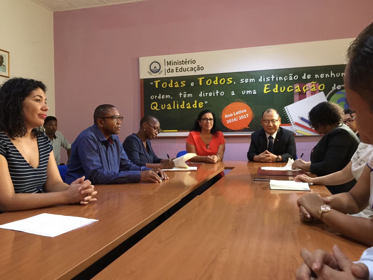本网讯 当地时间5月9日下午,佛得角大学孔子学院理事会理事长朱迪特·纳西门托与佛得角教育部规划管理局局长安娜·柯斯塔,在佛得角政府大楼教育部会议室,分别代表双方就教育部关于佛得角中学开设汉语课程项目事宜,签署了合作协议,佛得角部分中学将开始实施9-12年级汉语及汉语文化课程计划。中国驻佛得角大使杜小丛与政务参赞王锋、佛得角教育部长玛丽莎·罗萨芭尔、孔子学院中方院长郑庆君和外方院长艾美琳达,佛教育部国家教育局长安娜·门东莎、教育部人力资源处长爱迪森·西米多、财务处长米格尔·萨诺格拉以及孔院秘书布鲁尼、教师代表于力申等参加仪式。佛得角国家电视台、Tiver电视台、佛得角电台、Infopress报社等多家媒体进行了全程报道与采访。