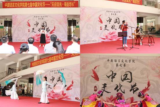开幕式演出精彩纷呈,校歌队首先带来歌曲《成都》深情表白蜀地风情;汉教1501班的同学随着歌曲《凉凉》翩翩起舞,娇美而不做作;校舞队以蜀川大地上的玛索花为灵感,倾情演绎舞蹈《玛索花开》;古筝配古琴演奏《大鱼》,让在场观众领略民族乐器的魅力;1603班同学用一曲《御龙吟》让时光倒流,回到三国时期蜀地上家国离恨、儿女情长的时代。