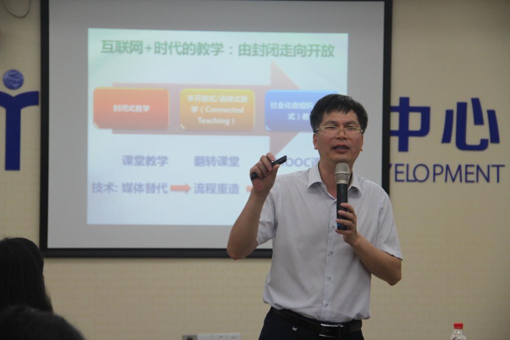 本网讯 5月3日下午,华南师范大学教育技术研究所副所长柯清超在北校区教师发展中心105多功能会议室带来信息化教学与微课建设的专题讲座。本次讲座以理论讲解和实操指导相结合的方式,十分精彩、实用,贴近参赛教师和一线教师教学研究的实际需要,不仅给在座教师带来了一次生动有趣的体验,更让大家对如何改变教育教学方式发挥学生的主动性有了诸多的思考,为今后更好地开展教学研究打开了全新的方向与路径。