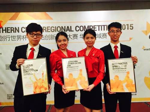 黄飘莹,2013级商学院国际市场营销专业学生。大一时,她夯实基础,刻苦学习;大二时,她加入Enactus,怀揣着企业家的精神自主创业,作为项目专员和公关部成员与伙伴共同创立了广州声声妙语信息技术有限公司;2014年,她参加校园创新实效营销挑战赛获得全国一等奖;2015年,参加创行世界杯中国站创新公益大赛拿到全国二等奖;同年,她在联合利华可持续发展公益行动中获得二等奖。如今,她带队参加了由欧莱雅中国举办的BRANDSTORM欧莱雅校园市场策划大赛,一路高歌,夺得季军,获得暑期实习生的面试机会。经过在上海两个月的实习,成功拿到中国管理培训生的offer。