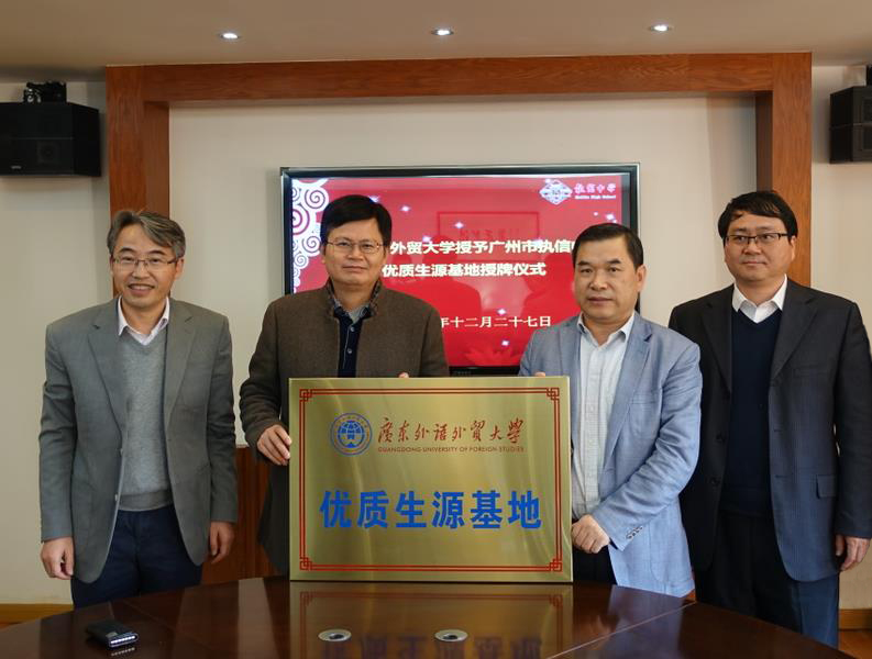 本网讯 12月27日,我校副校长焦方太与招生办一行到访执信中学,与执信中学校长何勇进行友好会谈。会上举行了我校与执信中学共建“优质生源基地”签约和授牌仪式。执信中学副校长陈民和我校教务处处长兼招生办主任袁长青等参加会谈并出席授牌仪式。