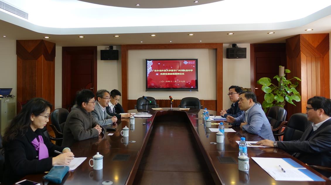 焦方太感谢执信中学多年来对我校招生工作的大力支持,并介绍我校在人才培养、国际合作与交流和招生等方面的情况,表示希望进一步加强与执信中学在教育、教学和招生等方面的交流与合作。何勇对焦方太一行的到访表示欢迎,并感谢我校在该校小语种课程开设方面所给予的大力支持,表示愿意进一步加强双方在人才培养和招生等方面的合作。