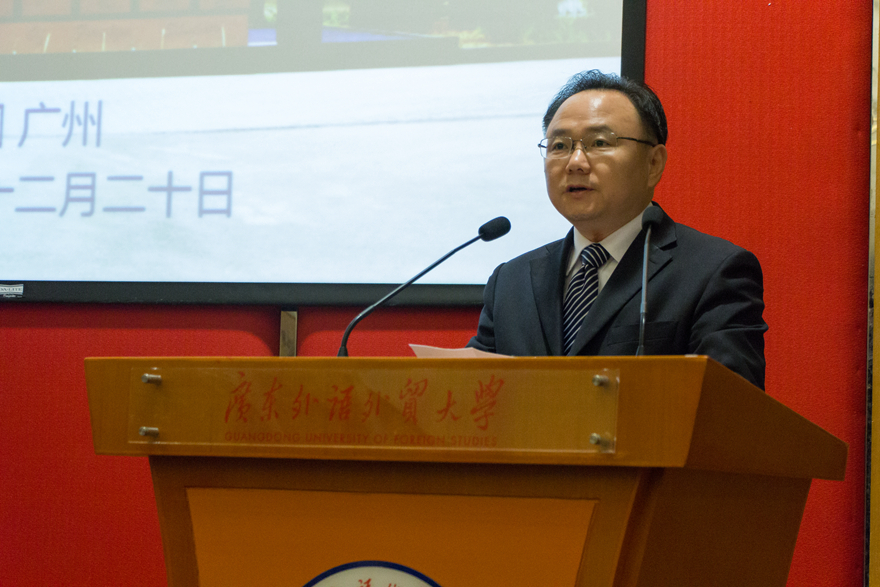 王创在讲话中谈到,“一带一路”建设是中国广泛融入全球经济体系,扩大中国文化对外传播,打造世界发展新格局的伟大举措,而外语的发展是中国实施大国外交战略,承担更多大国责任,维护更加公正合理的国际政治经济秩序的有力保障。外语院校作为多元文化的交汇处,对中国实施新的大国战略起到重要的助推作用,对促进中国和世界的互联互通、推进“一带一路”建设、发展开放性经济做出更大贡献。我校作为华南地区唯一一所外语本科院校,在外语人才培养,教学和研究方面发挥着重要的影响。他强调,我校校长仲伟合提出的服务“一带一路”建设的中国特色外语研究中心,正是学校充分发挥学科,专业和人才优势,通过外语研究推进国家外语发展的重大举措,具有重要的理论价值和现实意义。同时,他希望此次会议能够为项目目标的实现垫下坚实的基础。