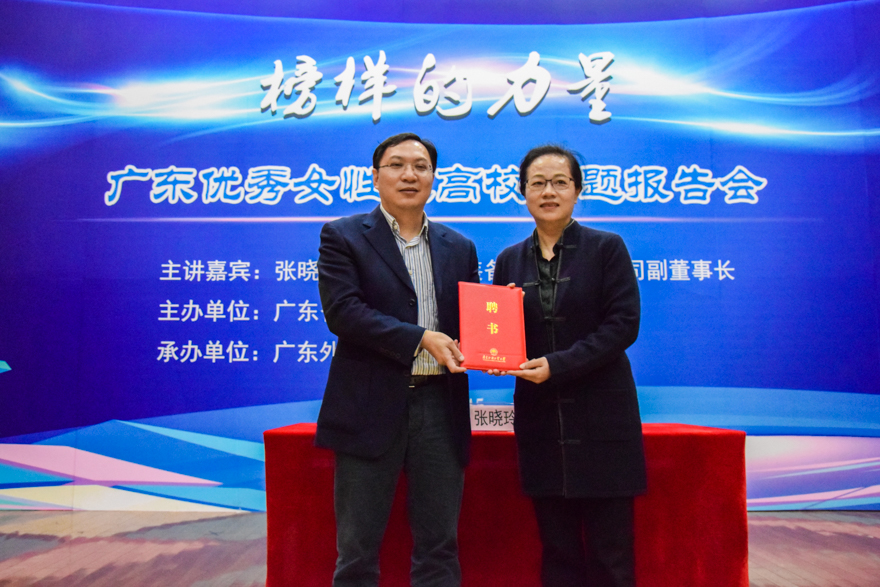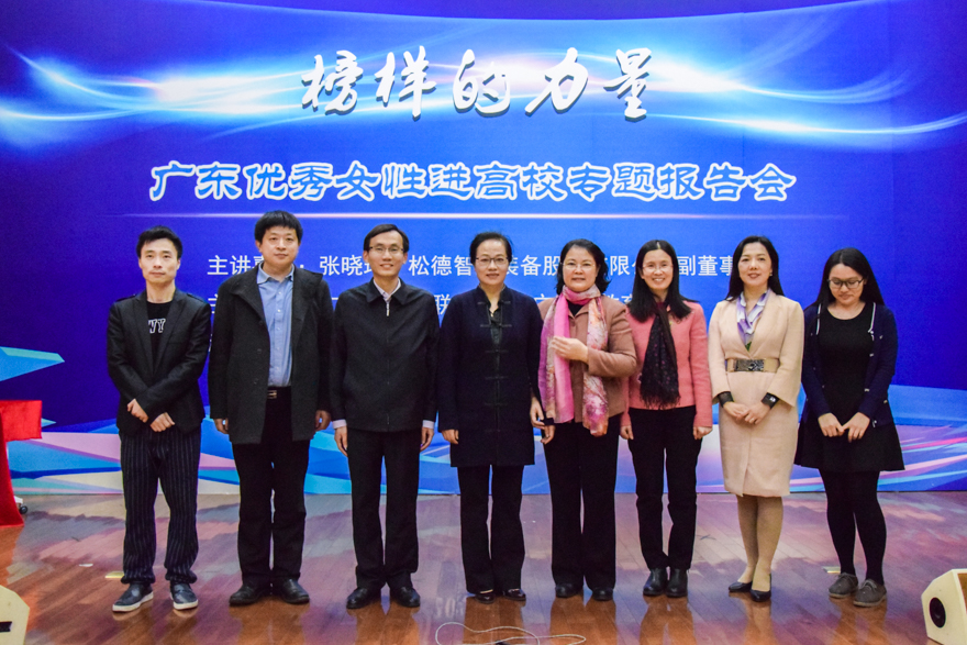 本网讯 12月15日下午,由广东省妇女联合会和广东省教育厅主办的“榜样的力量-广东优秀女性进高校专题报告 ”在我校南校区图书馆报告厅举行。“全国三八红旗手”张晓玲以自身经验与我校女大学生就女性独立等问题进行了深刻探讨,引导当代女大学生弘扬自尊、自信、自立、自强精神,积极投身“双创”时代大潮。广东省教育厅高校毕业生就业指导中心副主任冯伟雄、广东省妇联副主席罗敏、宣传部长陈文飞,我校副校长刘海春,学生就业指导中心主任谢秀兰等出席本次报告会。