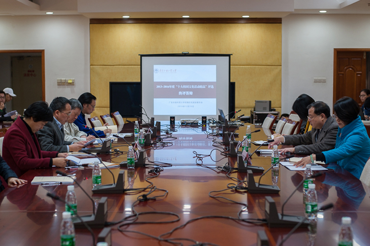 本网讯 12月16日下午,由我校党委宣传部主办的2013—2016年度“十大校园文化活动精品”评选终评答辩会在南校区行政楼第一会议室举行。16个参赛单位分别进行答辩,汇报精品活动的突出成就,充分展现了广外人在文化活动中欣欣向荣的风采。党委宣传部部长胡文涛主持答辩会。