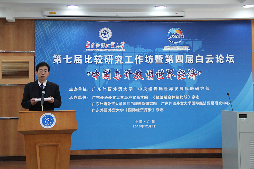 本次白云论坛主要由中共中央编译局世界发展战略研究部和我校主办,由《社会经济体制比较》杂志社、我校经济贸易学院、国际治理创新研究院、国际经济贸易研究中心、《国际经贸探索》杂志、国家社科重大公关项目“构建陆海内外联动、东西双向开放的全面开放新格局研究”(15ZDC017)课题组联合承办。