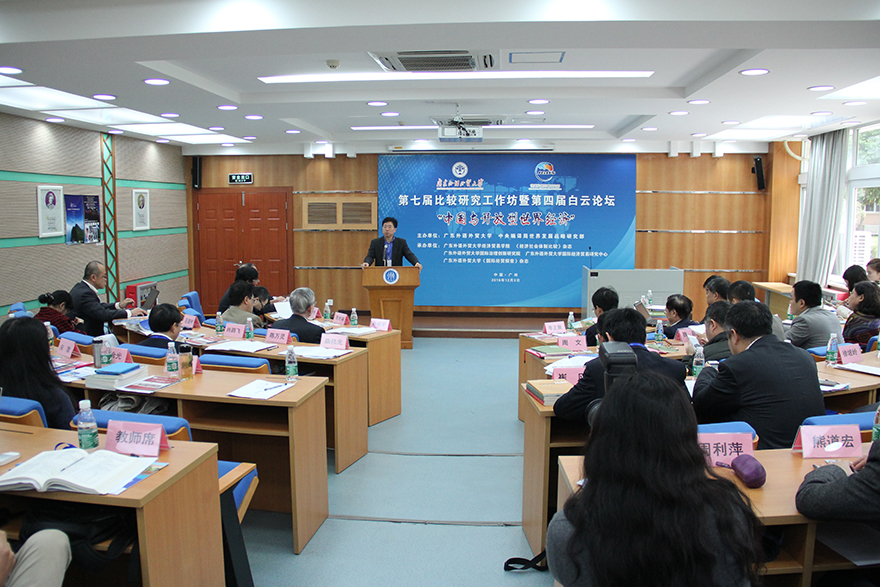 本网讯 为了更好地认识新常态下世界和中国经贸发展的新态势,分析后危机时代全球经贸的新动向,提出促进中国经贸平稳健康发展的对策推动中国经济的发展贡献智慧,12月3日,第七届比较研究工作坊暨第四届白云论坛“中国与开放型世界经济”学术研讨会在我校北校区MBA楼丝纺讲堂举行。出席本次研讨会的有中国世界贸易研究会会长、原商务部副部长、我国驻WTO首任大使孙振宇,中央编译局副局长季正聚,国家外国专家局中国国际人才交流基金会主任苏光明、对外经济贸易大学副校长林桂军、中央编译局世界发展战略研究部副主任、《经济社会体制比较》杂志主编丁开杰、人民日报社《内部参考》主编辛本健,我校党委常委、副校长何传添等。会议由我校经济贸易学院院长张建武主持。
