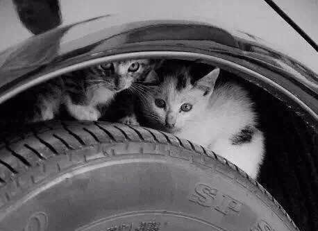 在车底下取暖的猫咪