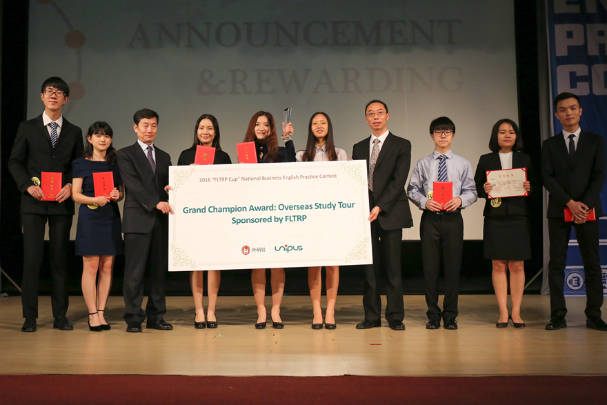 2016“外研社杯”全国商务英语实践大赛(“大赛”)由教育部高等学校英语类专业教学指导分委员会、中国国际贸易学会国际商务英语研究委员会、广东外语外贸大学、外语教学与研究出版社(“外研社”)主办。据悉,大赛覆盖东北、华北、西北、西南、华中、华东、华南七大赛区,以高校商务英语专业学生为主要参赛对象,是全国首屈一指的英语专业性比赛。2016年,外研社联合举办首届“外研社杯”全国商务英语实践大赛,首创互联网线上初赛,成为本届大赛的一大亮点。受邀评委团有来自香港镇通国际有限公司首席执行官繆家涛(Karl Miu)、广东广播电视台国际频道导演乔耀莹、香港恒生管理学院讲师Chongwei Wang、 Epix Gear主席Jarek Barc及高露洁中国创新中心总监蔡斯等。