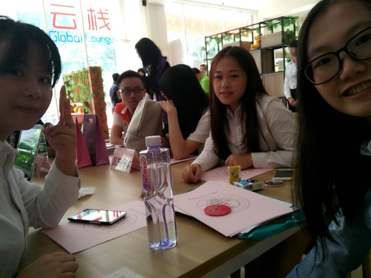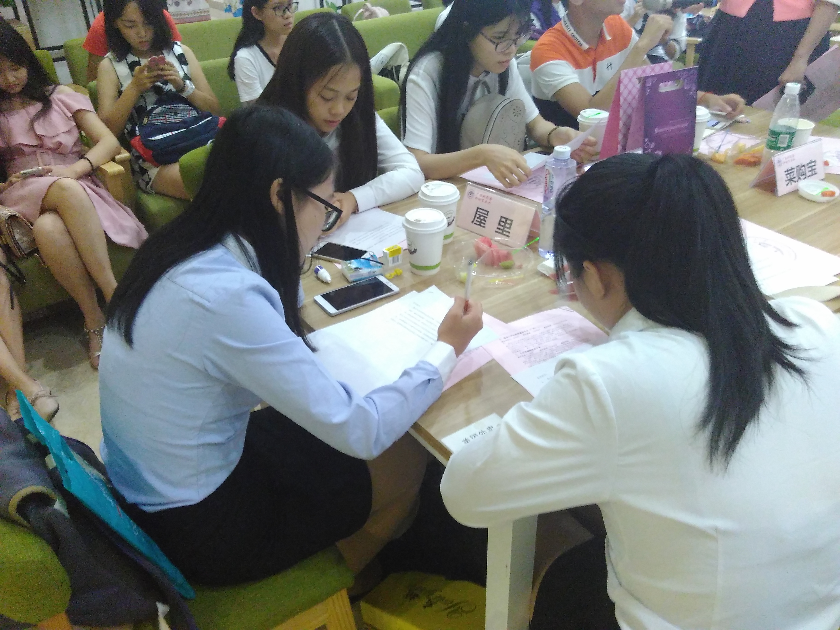 三个女生在讨论时的合照
