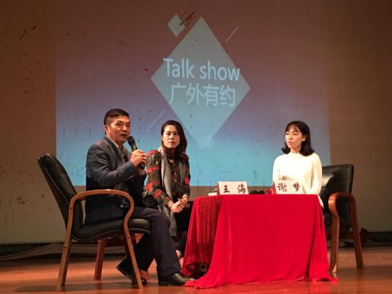 本网讯 11月11日晚,新生唤醒计划之“广外有约TALK SHOW”访谈活动在南校区学生活动中心举行。活动邀请了上海文广集团东方财经频道主持人、自媒体品牌“女力GirlsUNO”创始人谢梦与我校新闻与传播学院教授王海作为访谈嘉宾,嘉宾从自身经历和工作经验出发,分享了大学生活与人生规划指南。