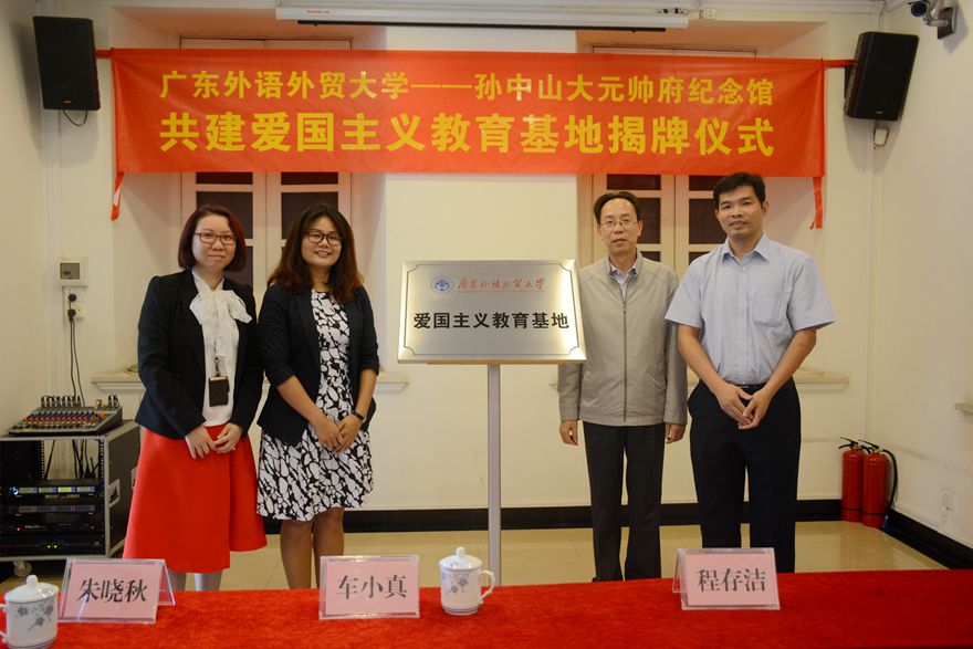 本网讯 为纪念孙中山先生诞辰150周年,弘扬爱国主义精神,培育和践行社会主义核心价值观,11月3日下午,商英学院联合孙中山大元帅府纪念馆举行爱国主义教育活动。我校与孙中山大元帅府纪念馆达成共建爱国主义教育基地协议,现场举行了爱国主义教育基地揭牌仪式。孙中山大元帅府纪念馆馆长程存洁、副馆长朱晓秋,商英学院党委书记车小真及商英学院首期“青马班”学员等参加了此次活动。