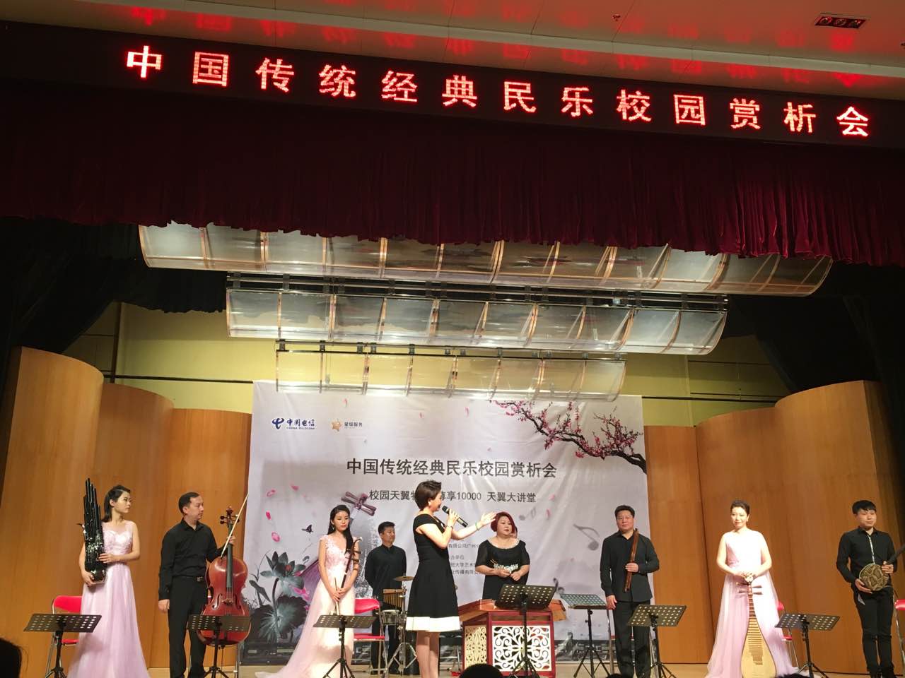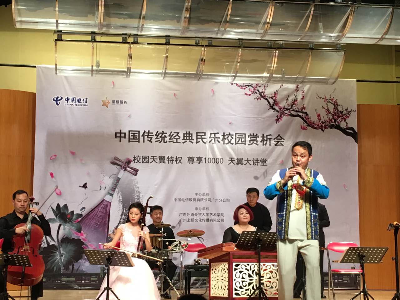 本网讯 10月31日,由中国电信股份有限公司广州分公司主办、艺术学院和广州上扬文化传播有限公司承办的中国传统经典民乐校园赏析会在我校南校区艺术楼小剧场举行。讲座与小型音乐会相结合的表演形式让观众耳目一新,深刻感受到中国传统民乐的独特魅力。艺术学院党委书记朱珍葶等学院领导及全校师生代表、企业界和兄弟学校的师生一同观看了这场音乐盛宴。