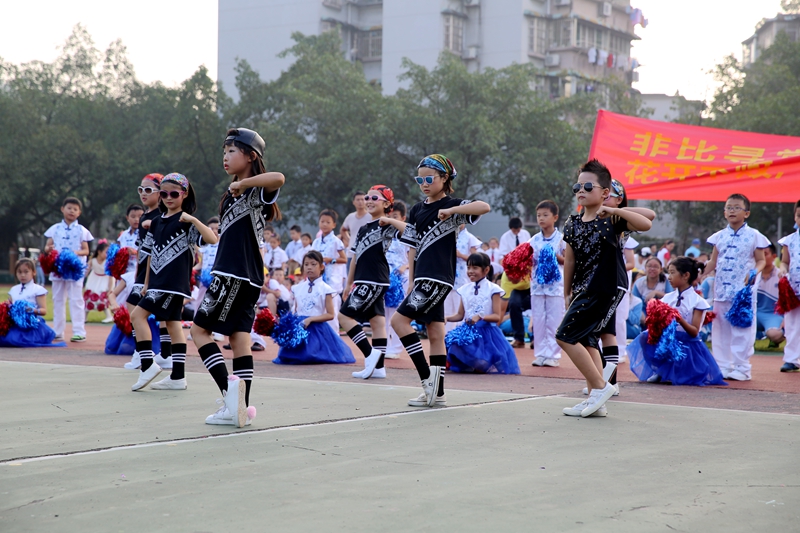 谷玥灼、张晓磊和篮球宝贝带领一年级1班的孩子们运球压轴出场,把开幕式推向了高潮。高技术的扣篮表演和激情四射的啦啦舞,赢得场上阵阵欢呼,点燃了师生们的热情,师生们也更加体会到体育的高度、力量和奋斗的乐趣。