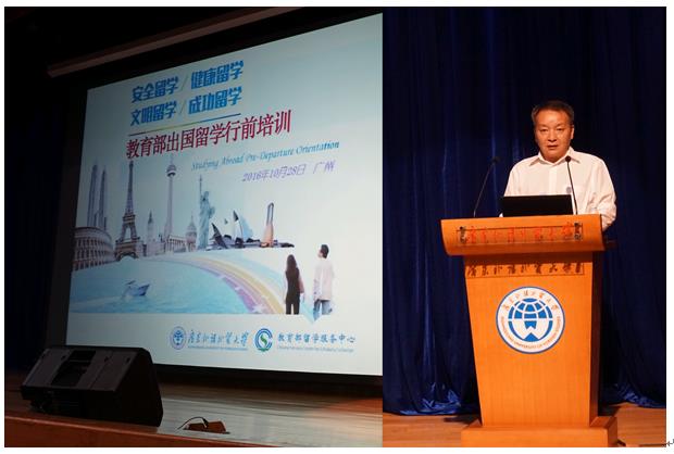 本网讯 10月27日至28日,教育部华南地区出国留学行前培训会在我校举行。华南地区公派留学高级访问学者、自费留生、公派交换生300多名参加培训。此次培训包括安保实操培训和专家讲座两部分,旨在提高留学人员的安全意识,加强留学人员行前安全教育,提高跨文化交际能力。培训由教育部主办,教育部留学服务中心承办,我校协办。我校副校长陈林汉出席开幕式并致辞。