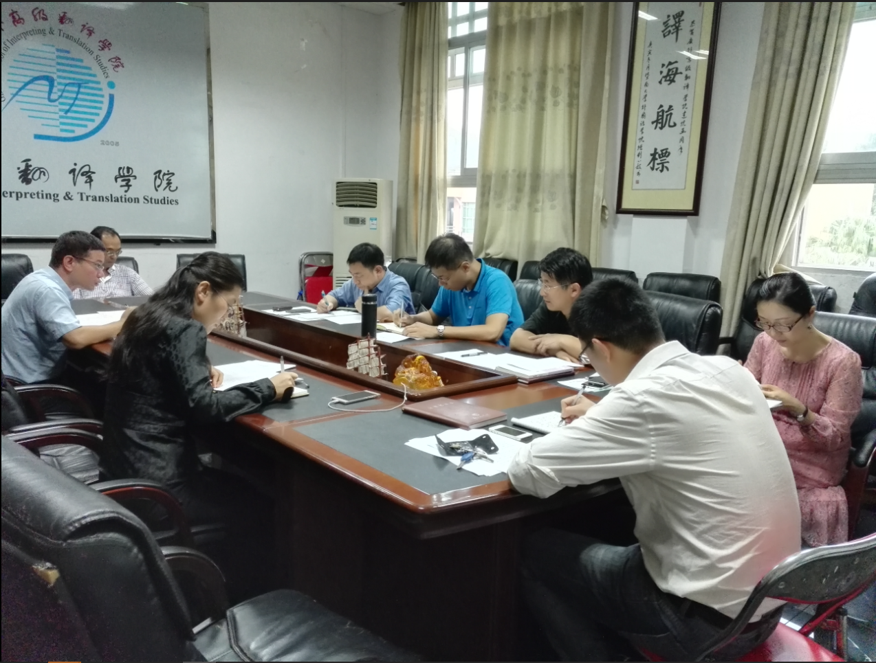 本网讯 10月24日,根据开展“两学一做”学习教育和纪律教育学习月活动的安排,翻译学院党委召开纪律教育专题学习会。翻译学院党委书记刘志军和院长赵军峰等学院全体党委委员、学院班子成员、学院中心组成员围绕《中国共产党问责条例》以及如何切实贯彻党的民主集中制,开好党政联席会开展专题学习。