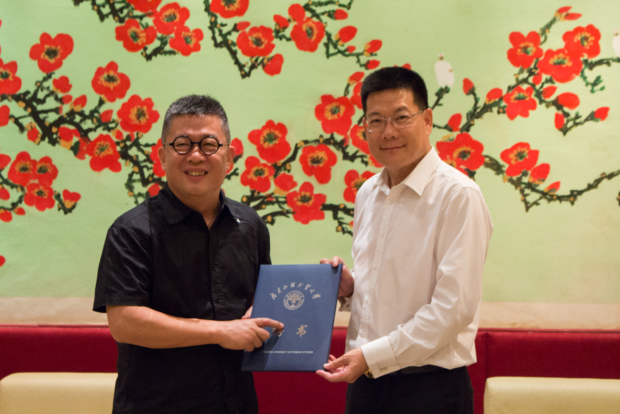 余英在讲话中介绍了保利集团的情况。作为世界500强企业之一,保利集团秉承“一业为主,多业并举”的发展模式,形成了以房地产为主,文化、科技、能源等为辅的五大领域。余英强调,近年保利集团特别注重教育事业的发展,一方面希望通过引进名校进地产,能给业主提供良好的教育环境;另一方面,保利集团目前在英、美、澳均有发展项目,对国际化人才需求量大,希望能组织员工到广外学习,建设学习型团队。余英说,1984年从华南理工大学本科毕业后,1992年又在华工攻读硕士和博士。参加工作后,他不忘初心,还担任了沈阳建筑大学客座教授,也在华南理工大学带硕士研究生。他表示非常希望及乐于为加强企业与高校的合作出一份力。