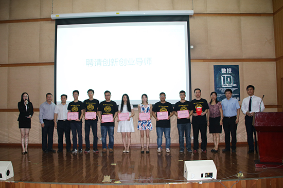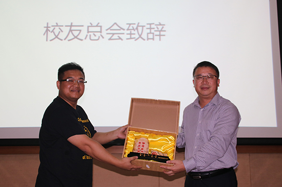 校友总会代表谢伟光为数据挖掘实验室十周年庆典献上祝福,并为优秀校友代表赠送纪念品。会上,周晓鑫、伍伟明、邝丽敏等11位优秀校友被聘为思科信息学院创新创业导师。