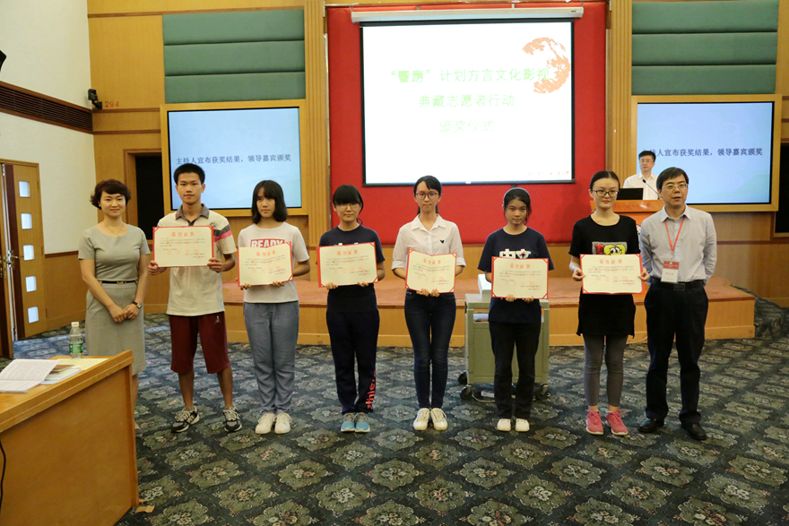 陈星通过引用“響應”计划和方言电影节计划联合发起人汪涵先生曾说的一句话,“通用语言让我们走的更远,方言能够让我们知道自己是谁,让我们找到回去的路”,指明了保护方言的重要性,表示了传承传统文化的决心。李安安则向在场的嘉宾介绍了足荣村方言电影节的内容和形式,并阐释了他们是如何将电影与方言、电影节与村落相结合,从而与大众共同守护家乡的文化。随后,在场的领导嘉宾为在“響應”计划方言文化影视典藏志愿者行动中获奖的同学颁奖并合影留念。