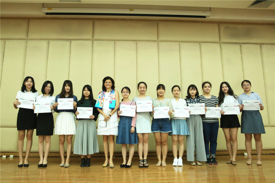 艾古丽女士在讲话中介绍道,华南地区对意大利语的兴趣不断上升,意大利语已成为我国学习人数第四多的外语。她还对参与了意大利建筑设计金奖展翻译工作的我校学生表达了欣赏与感谢之意,并为他们颁发荣誉证书以作纪念和鼓励。