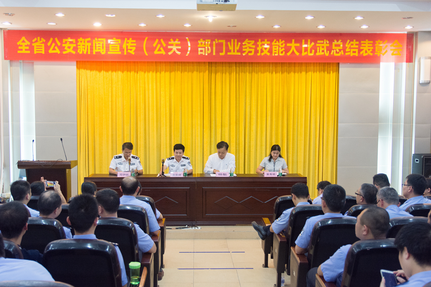 本网讯 10月14日下午,全省公安新闻宣传(公关)部门业务技能大比武总结表彰大会在我校七教报告厅举行。省厅办公室副主任、新闻中心主任温国辉,省公安厅办公室调研员及新闻中心副主任郑伊鸥、刘博,我校新闻与传播学院院长杨魁、新闻与传播学院党委书记黄秀娟,副院长侯迎忠等出席大会,会议由郑伊鸥主持。