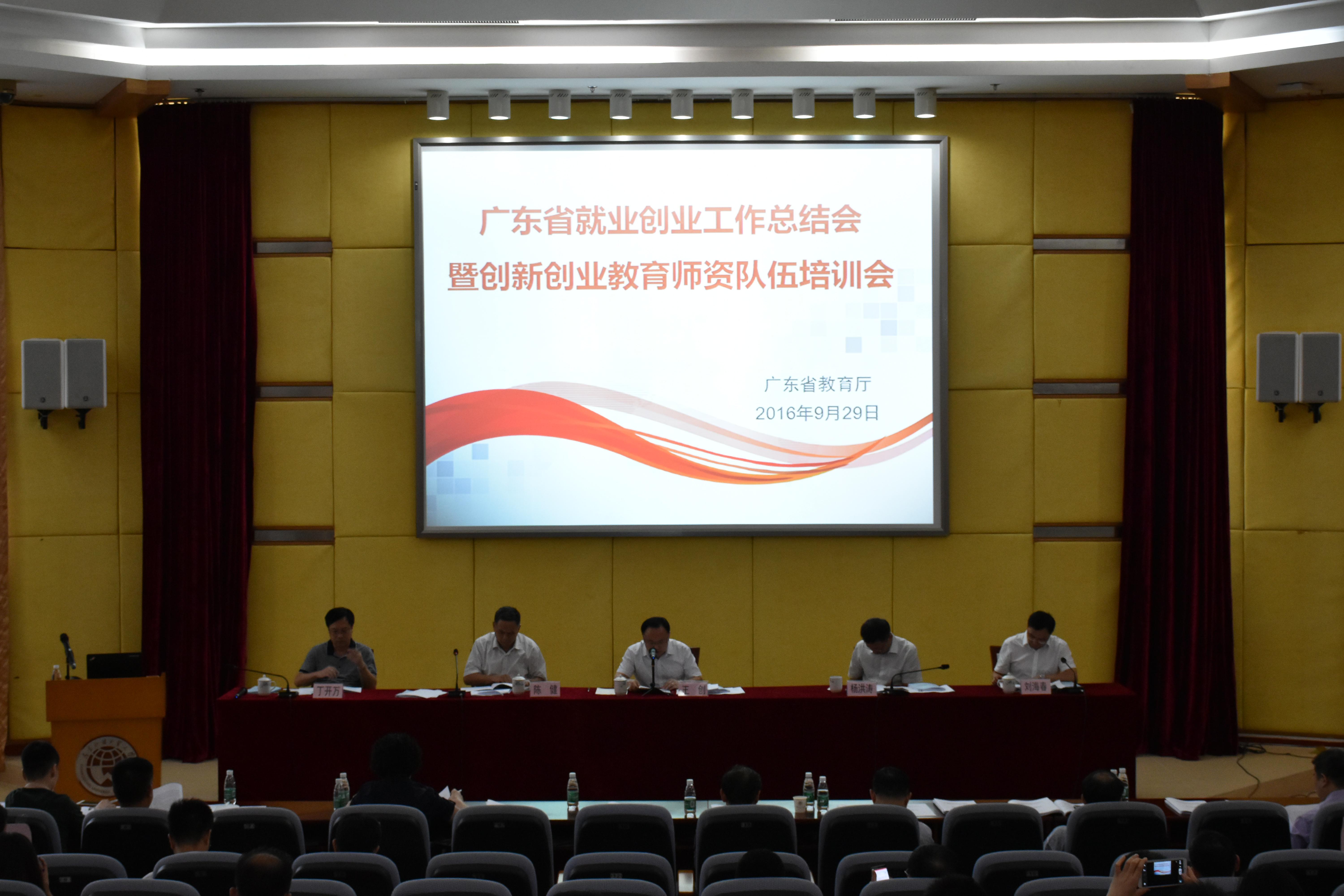 本网讯 9月29日,广东省就业创业工作总结会暨创新创业教育师资队伍培训会在我校南校区八角楼会议室举行。广东省省教育厅副厅长王创、副巡视员陈健、教育部就业指导中心师资处处长杨洪涛以及我校副校长刘海春出席会议,一百多所省内高校的就业创业工作部门主要负责人参加了本次会议。会议由陈健主持。