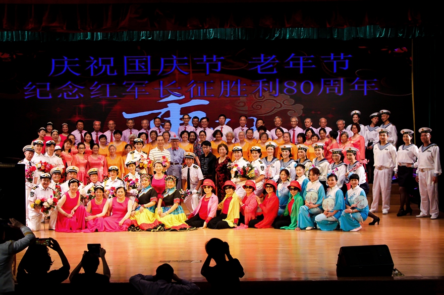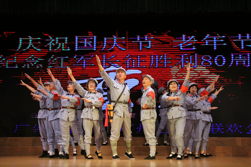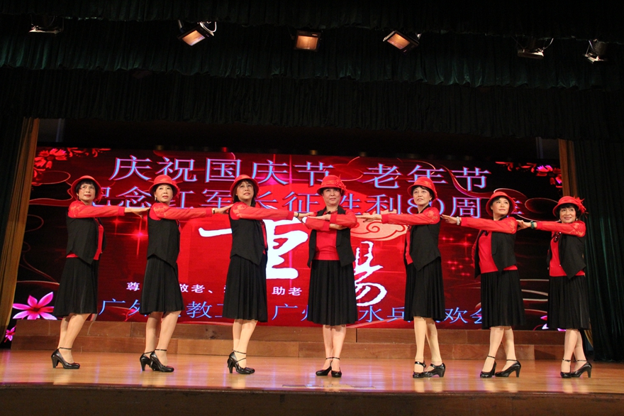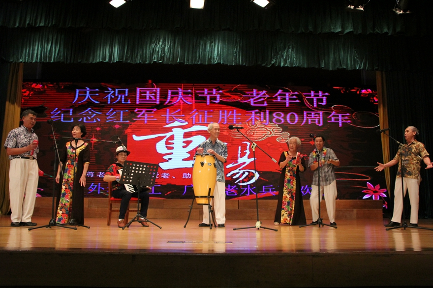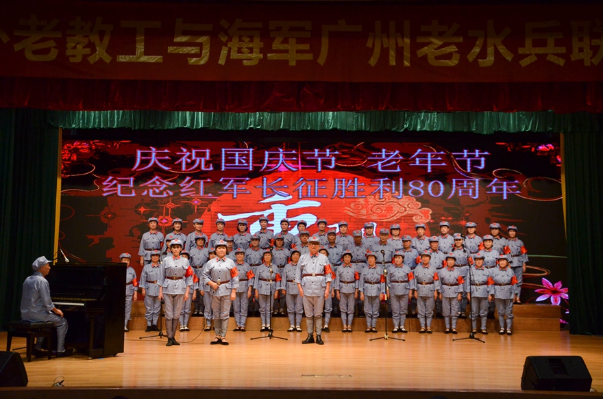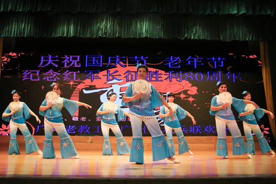 本网讯 9月28日上午,由我校离退休处举办的广外离退休教工庆祝国庆节暨老年节专场联欢活动在第六教学楼学术报告厅举行。校党委副书记李云明,校团委书记苏奕、离退处处长潘运利、广外居委会副主任李霜娟以及广外离退休教工、海军广州干休所老同志、离退休处全体工作人员参加了联欢会,并欣赏了由退休教工合唱团、舞蹈队、老水兵艺术团等带来的精彩演出。大会由黎燕老师主持。