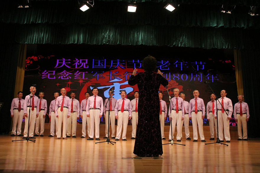 老教工合唱《纺织姑娘》与《故乡的小路》。故乡是一个绵长的话题,总能引得人浮想联翩,深得观众共鸣。