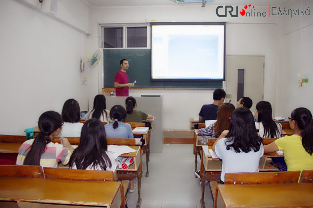 中国国际广播电台记者采访我校希腊语大一新生。学生们在第一节课上学习了希腊语字母,了解了希腊概况。课上还举行了一个小型的命名仪式,每位学生都选择了自己的希腊语名字。当同学们被问起为何选择希腊语作为自己的专业时,他们纷纷表达了自己对希腊悠久历史、多彩文化、优美景色的向往、爱慕和浓厚兴趣。