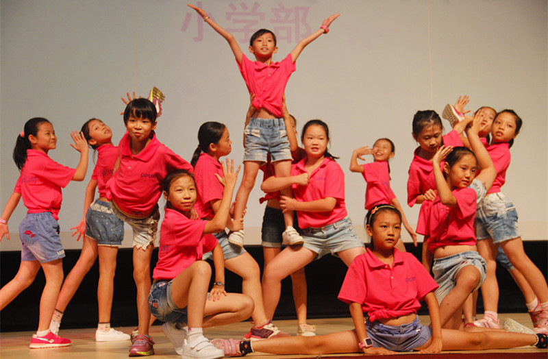 典礼结束于文艺表演,共有11个节目,表演形式多样,内容丰富多彩,有舞蹈、歌曲串烧、诗朗诵、英文短剧、朗诵、合唱等,如:初二班的英文短剧《三只小猪》、初一班与小五班联袂演绎的英日双语版的《致父、致青春》、小学部《蜗牛的奖杯》等;初三班的诗朗诵《致广外夏令营》,这首诗为初三班的班主任杨雪樱老师所创作,通过文字再现了学员们在夏令营学习和生活的点点滴滴,很快便把大家带入15天夏令营生活的美好回忆中,同时表达了学员们对即将离营的不舍,用真挚的语言表达真实的情感,扣人心扉,引起大家的共鸣,使大家都沉浸其中。两位外教用粤语演唱《喜欢你》则引起现场观众共鸣,最后变成全场大合唱,把文艺表演活动推向高潮,每一位观众都被现场欢乐幸福的氛围所感染。